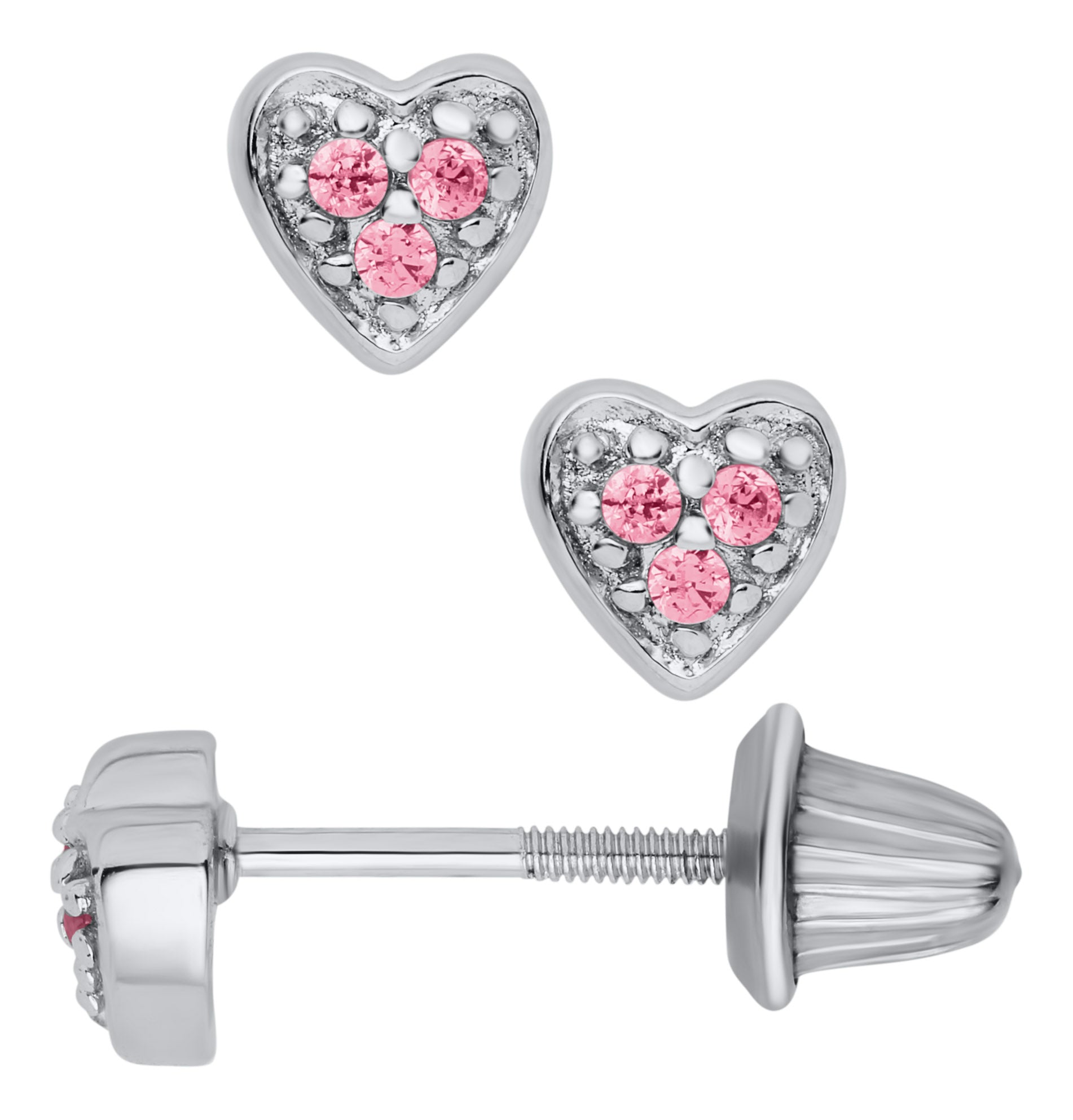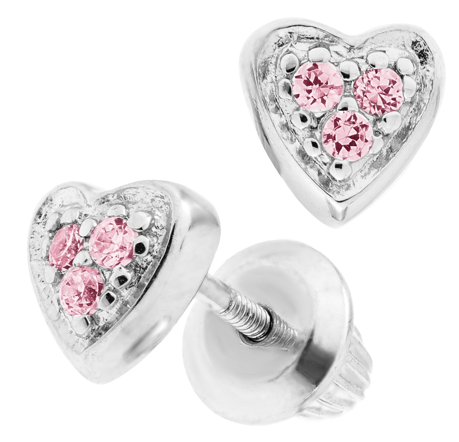Children's Pink Crystal Heart Earrings