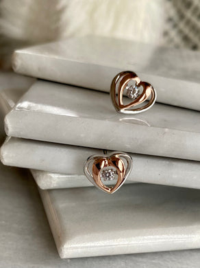 Silver and Diamond Heart Earrings