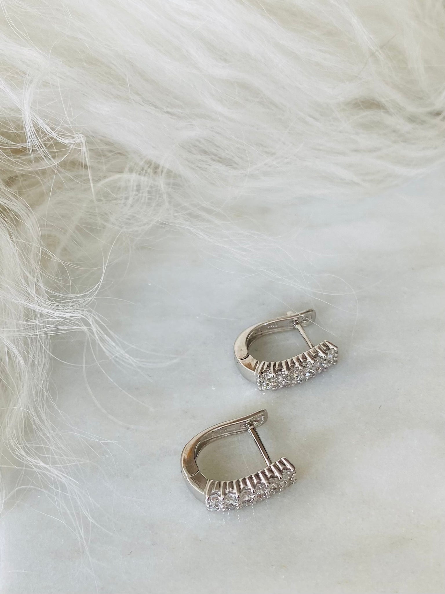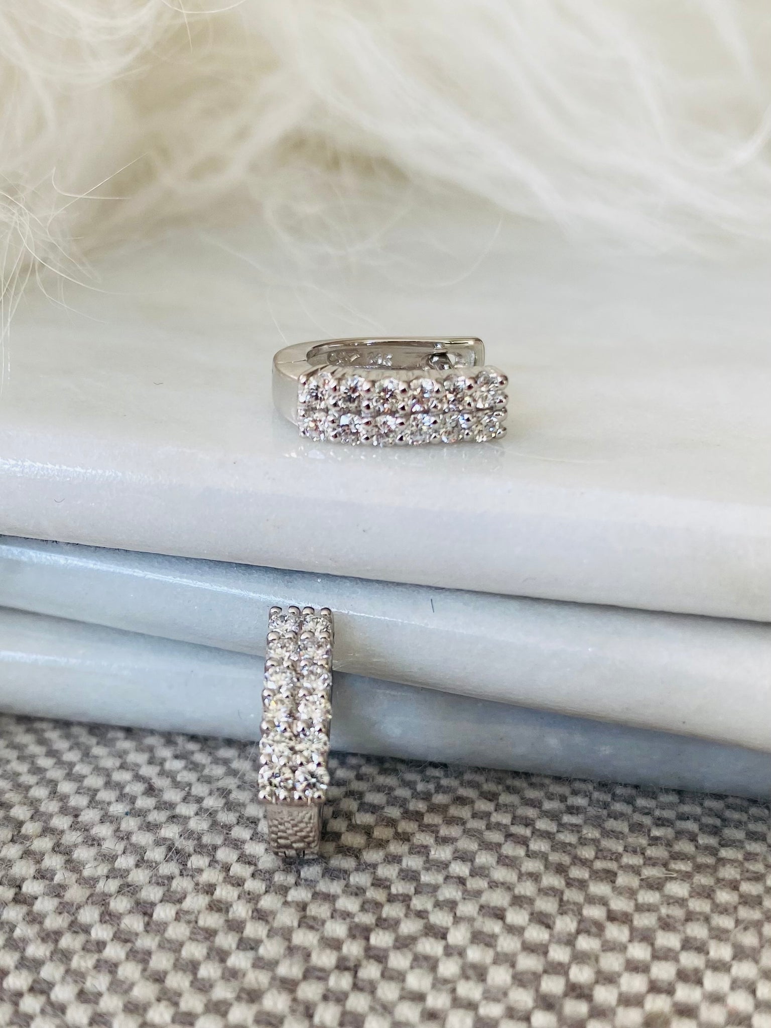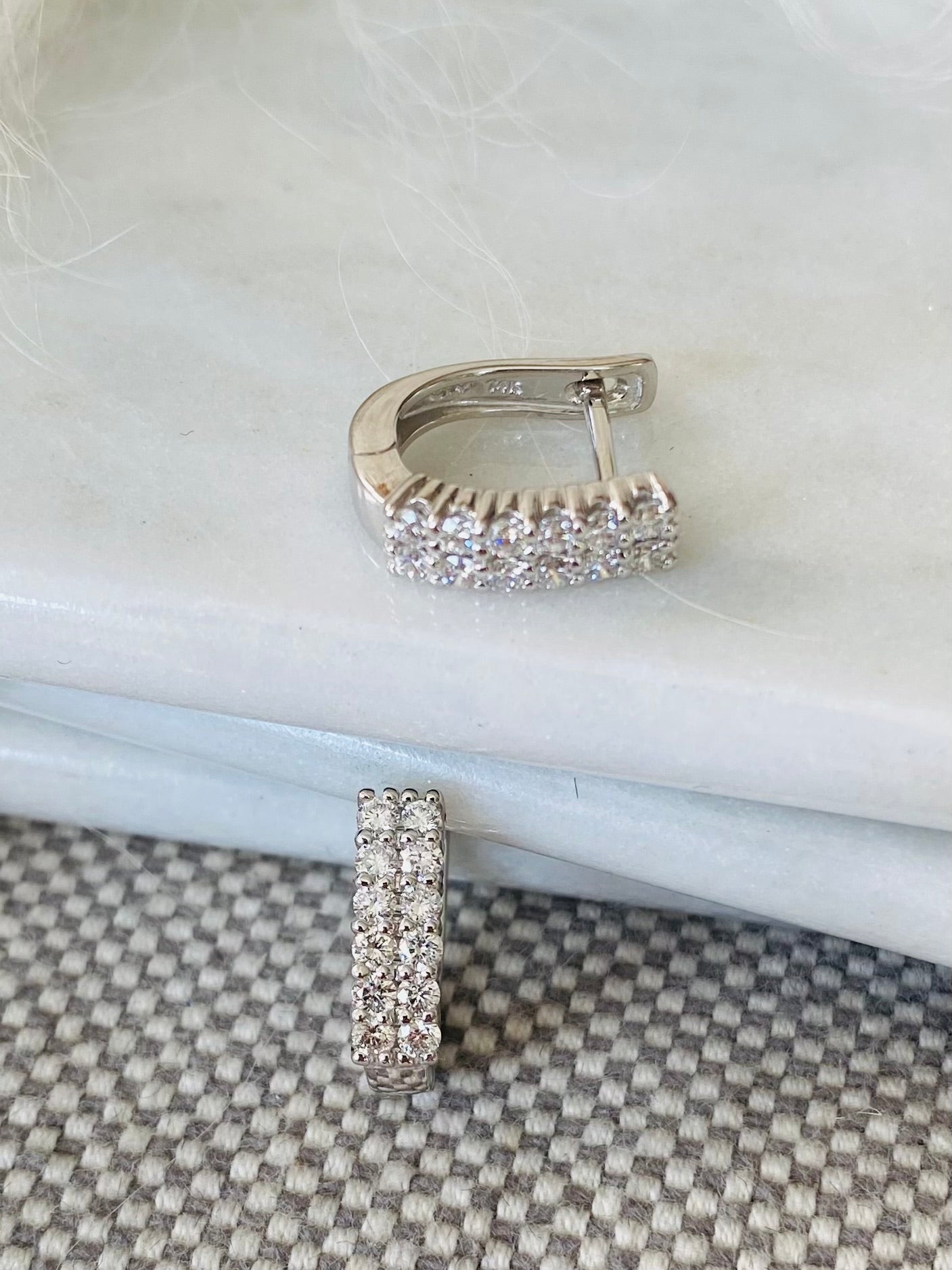 Superb diamond lever back style hoops each with a double row of excellent quality general natural diamonds all G-H SI with a total weight of 0.50cts set in 14k white gold.