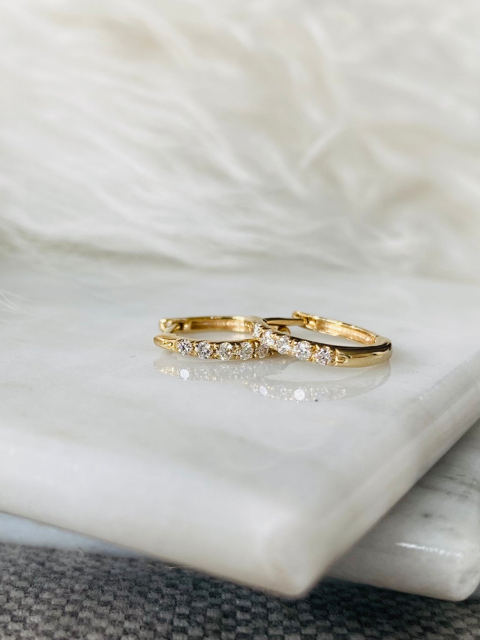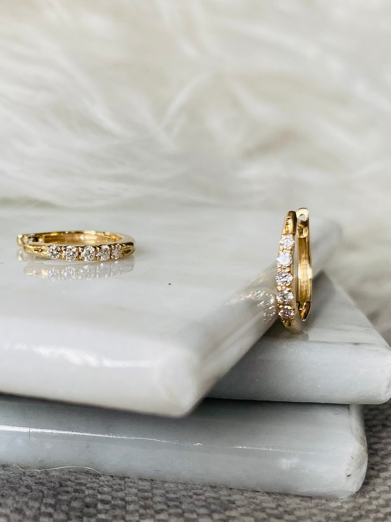 Beautiful lever back diamond hoops are an easy and elegant choice for everyday wear. Lever back styling makes them easy to put on and the snap closure keeps them securely in place.