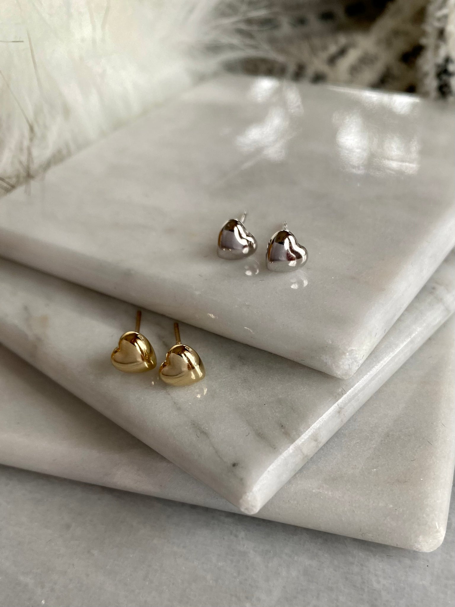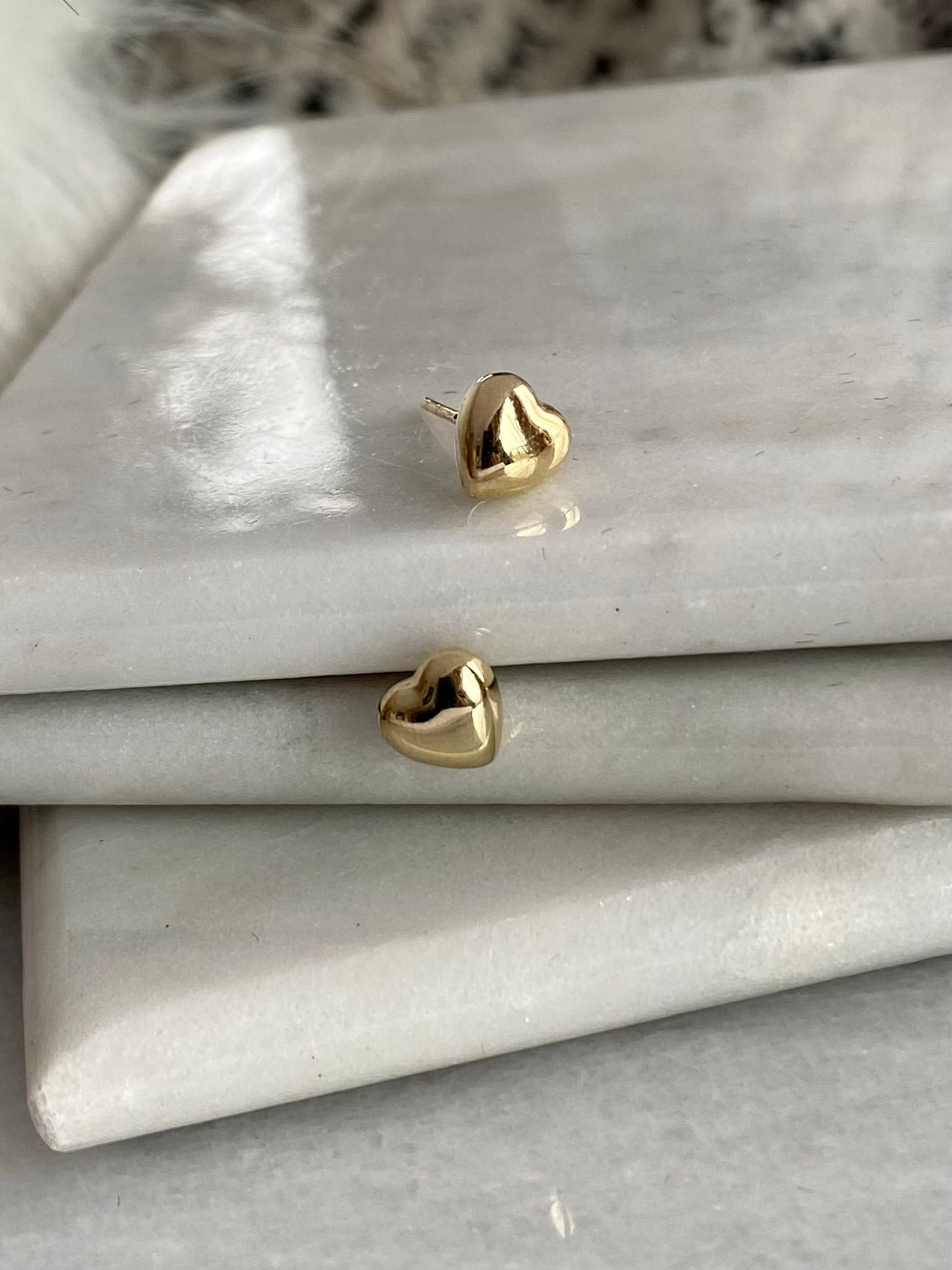 Sweet bubble style heart earrings in 10 karat white or yellow gold