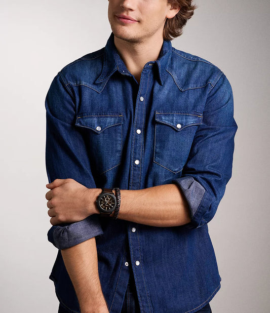 Machine Chronograph Brown Leather Watch and Bracelet Set
