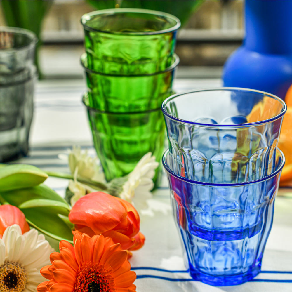 The original tempered Picardie glasses are known as the "original French tumblers". The mechanical and thermal resisting properties are considerably increased and enable these products to maintain its original look for years. Picardie, The Timeless Star! Its unique sensual curves fit perfectly in the hand, its facets ideally catch the light and are conveniently stackable, all gather to make Duralex the perect choice!