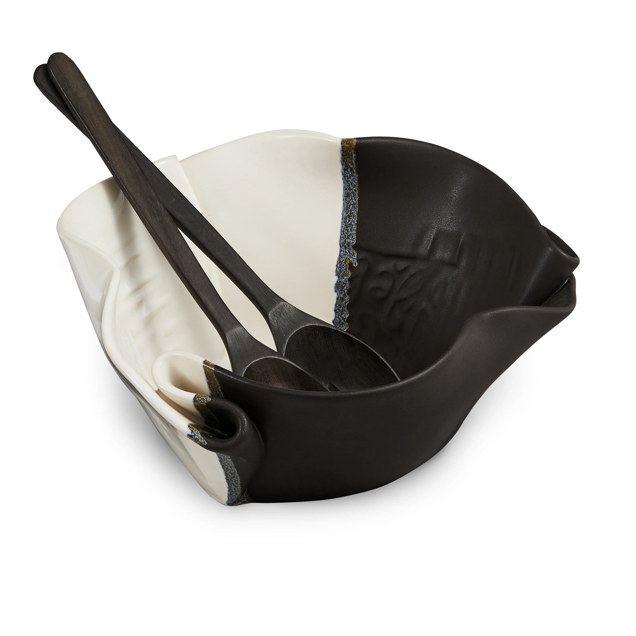 Comes with palm salad servers. All of our pottery is oven, dishwasher and microwave proof as well as food and drink safe. All pieces are available in all glaze. Dimensions 9 × 7.5 × 4 in colours.