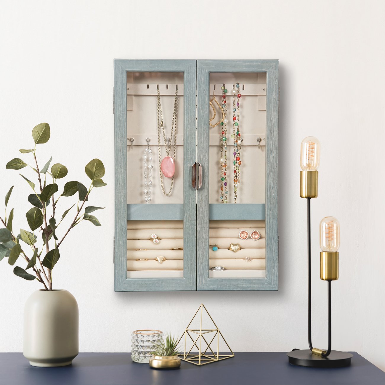 Wall-mount jewelry cabinet