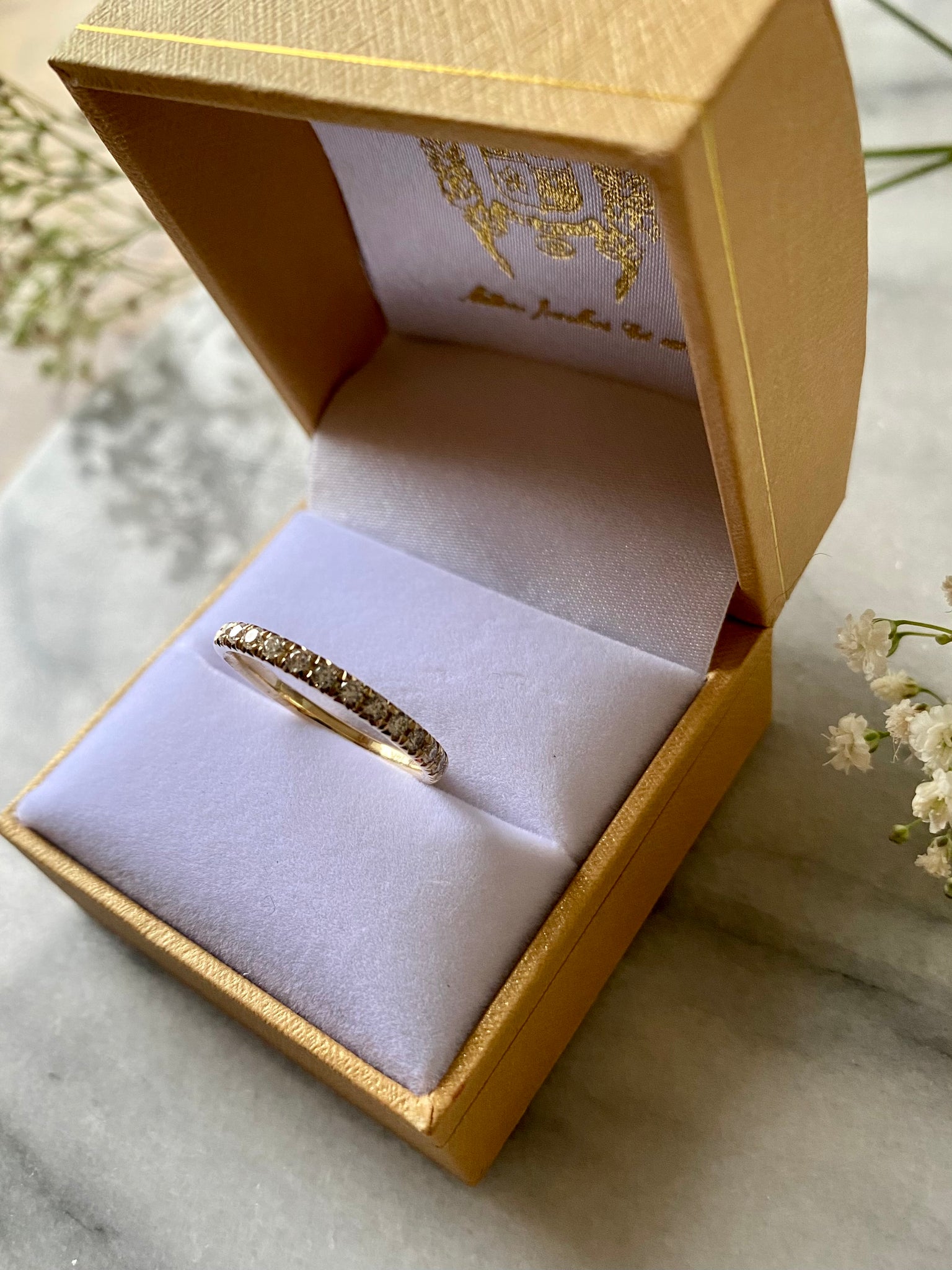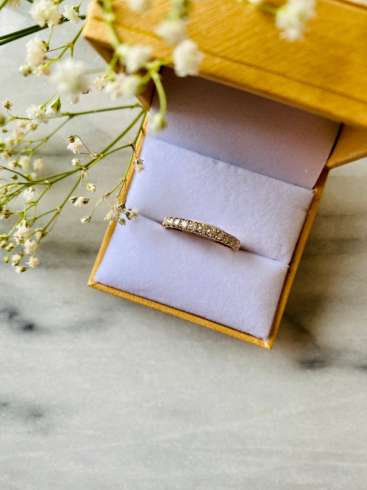 Diamond band in 14k yellow gold featuring 14 full cut diamonds with a total carat weight of 0.50cts