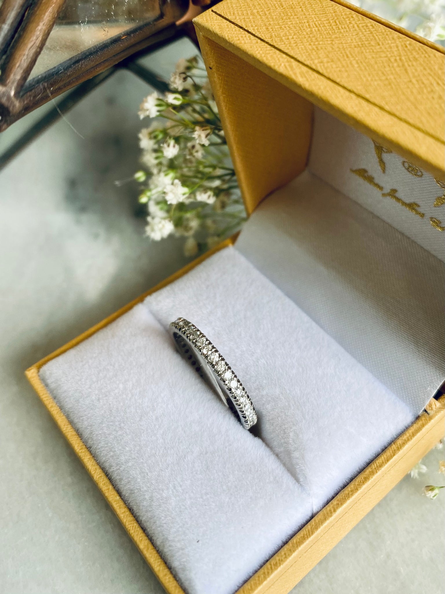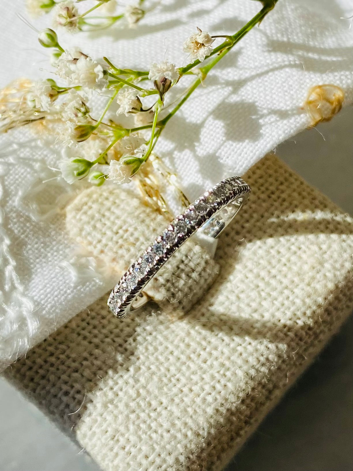 Eternity style band crafted in 14k white gold with 0.41 carats total weight of natural diamonds.