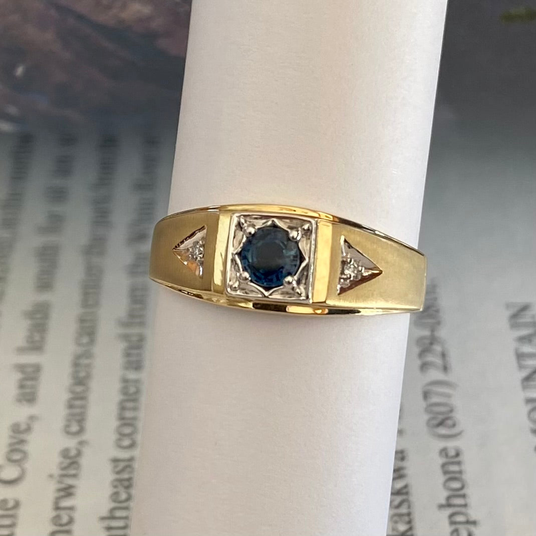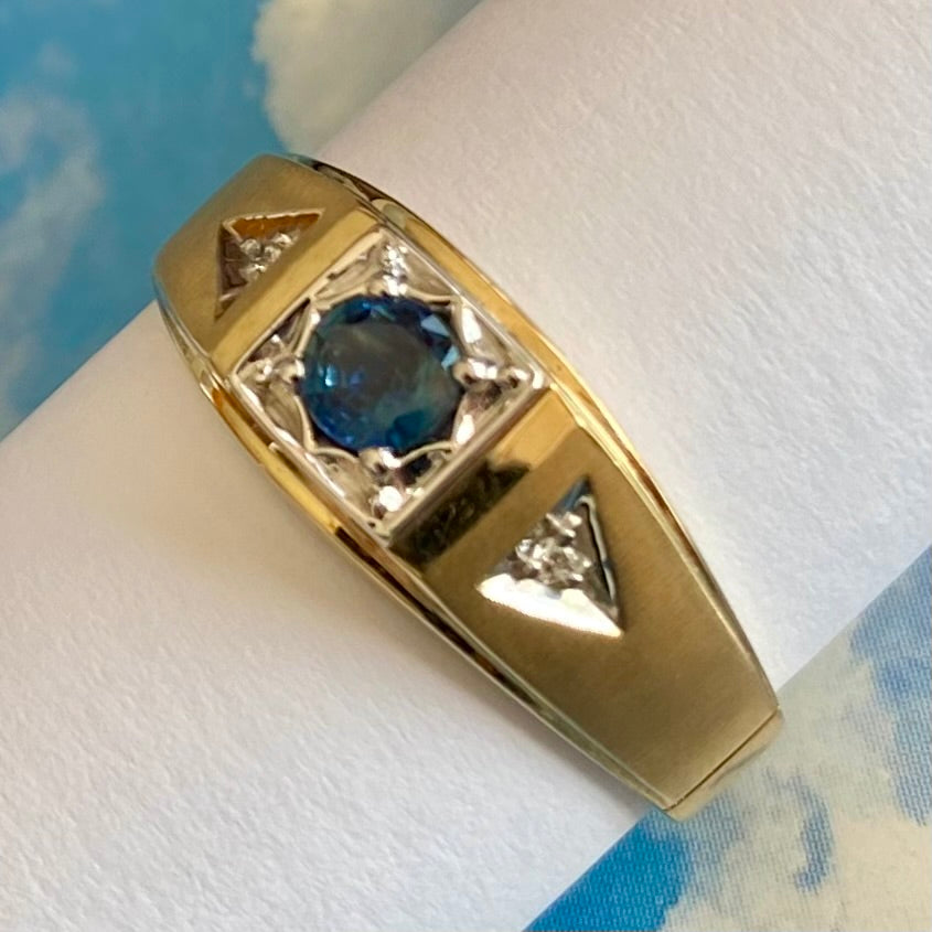 Make a statement with our Men's Sapphire and Diamond Ring. Crafted with a stunning sapphire and sparkling diamonds, this ring exudes elegance and sophistication. Perfect for any occasion, it's a timeless piece that will elevate any outfit.