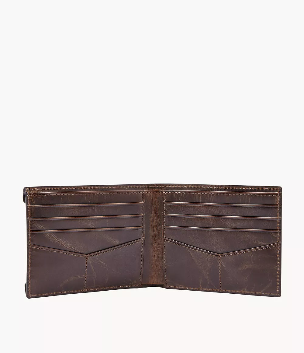 This leather sliding 2 in 1 features RFID lining, 1 bill compartment, 2 slide pockets, 8 credit card slots. Fossil leather products support responsible manufacturing via the Leather Working Group.