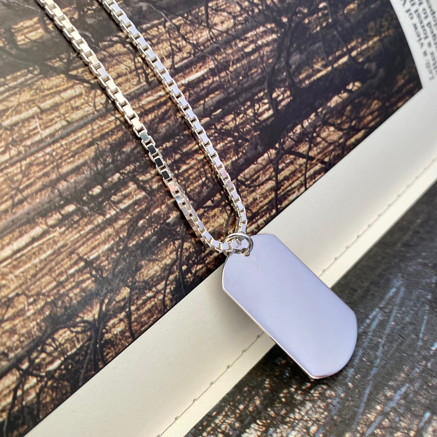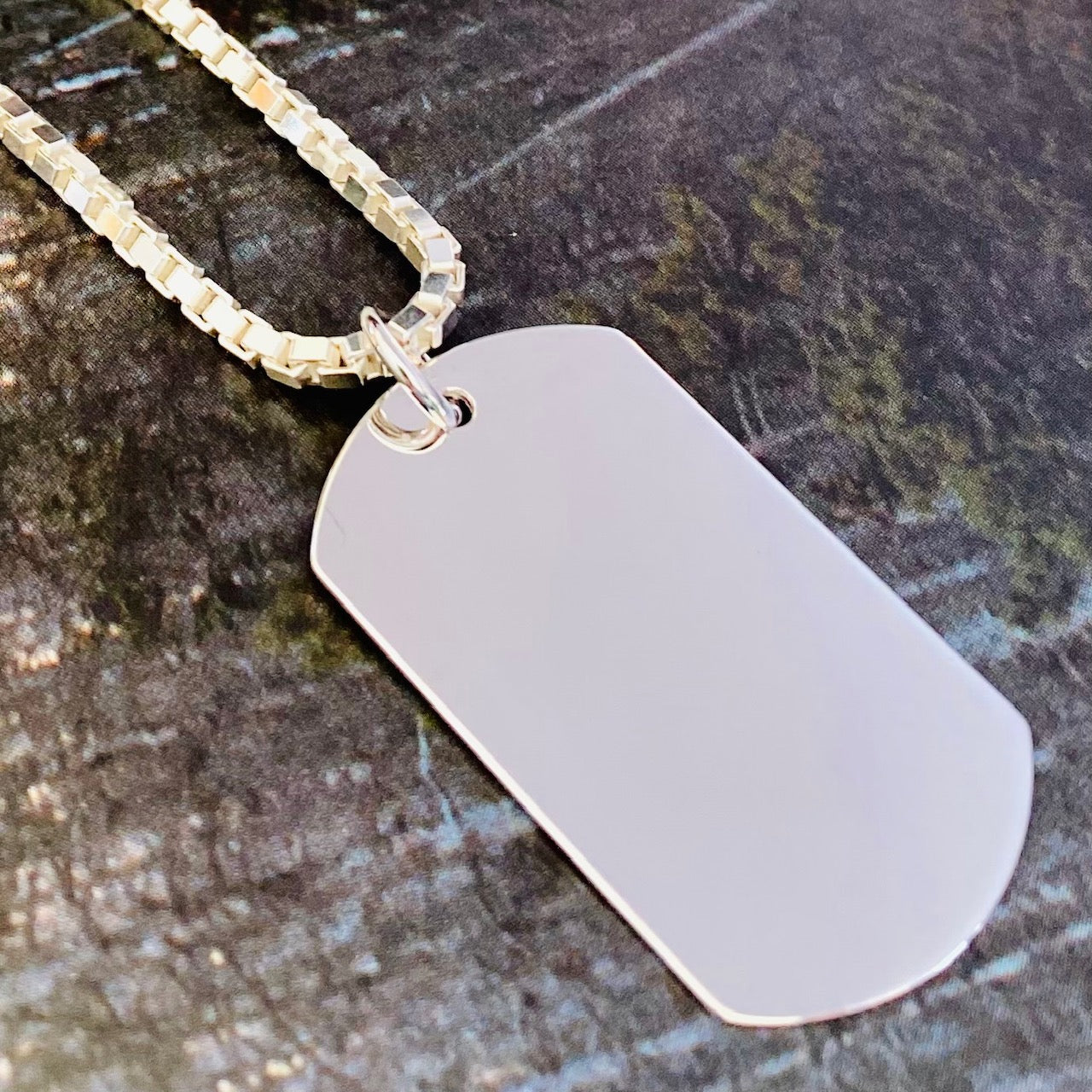 This Men's Chain and Pendant features a box chain made of high-quality sterling silver, along with a sleek and stylish dog tag style pendant. The chain provides both durability and elegance, while the pendant adds a touch of masculinity. Elevate your style with this versatile accessory.