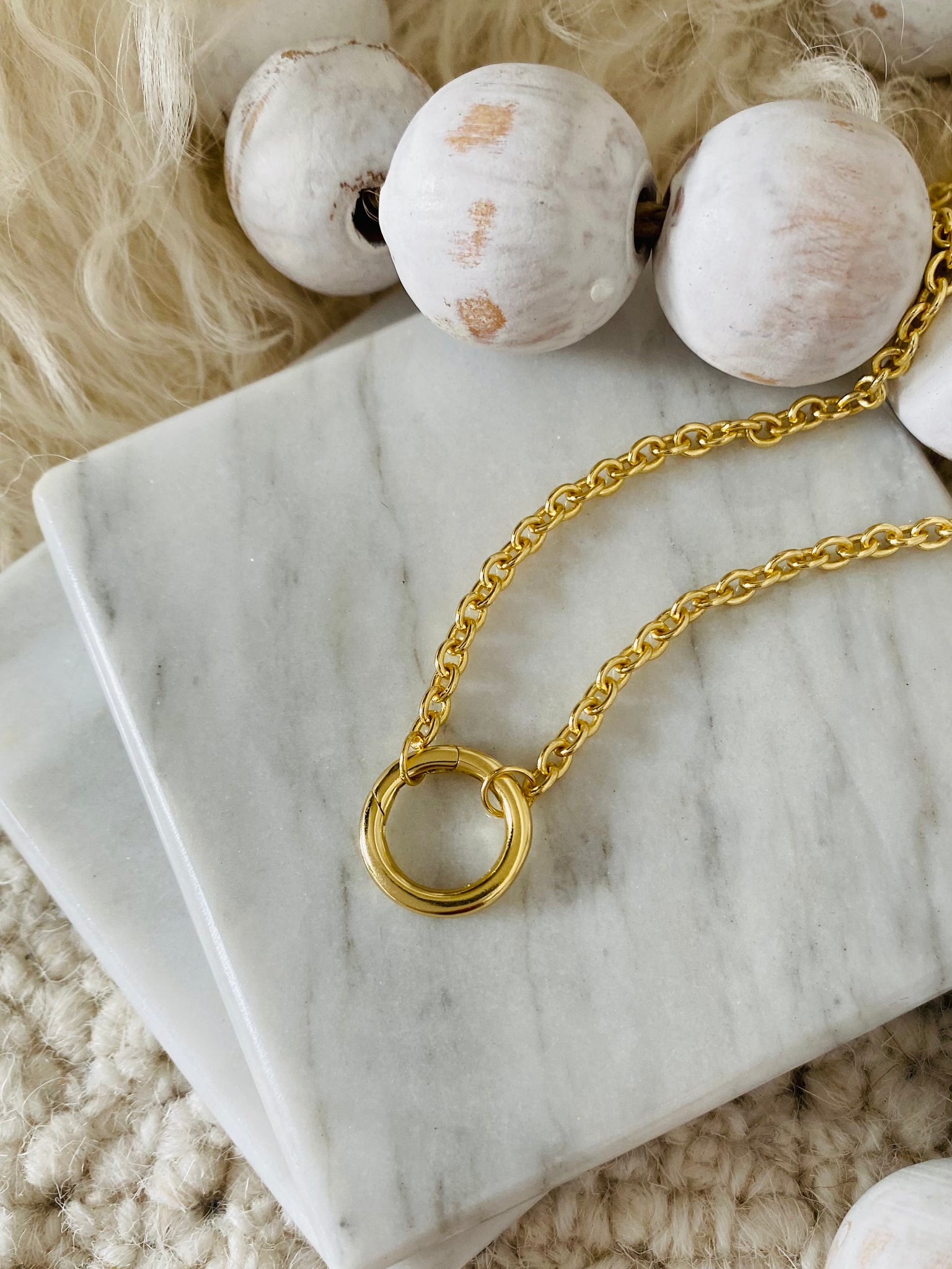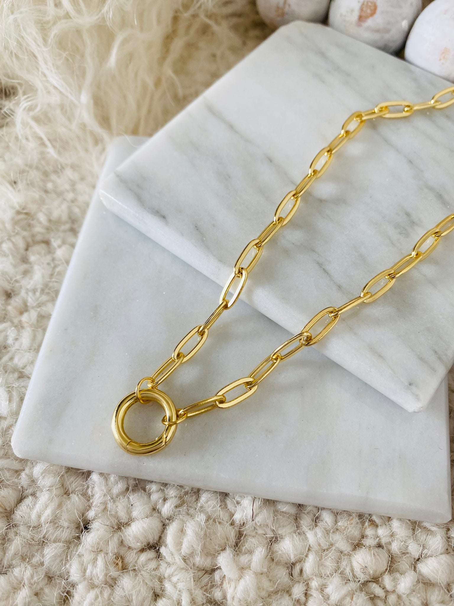 Sterling silver gold vermeil enhancer necklaces allow you to clip on charms that suit your mood or style. With an easy to open lever, change up your charms as often as you choose! Necklaces are 18" with 2" extenders. Charms sold separately.