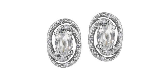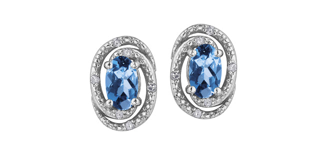 Beautifully styled, these sterling silver birthstone earrings features a genuine birthstone with a surrounding of diamonds to off-set each stone. Can be purchased with matching pendant and earrings. All months available. Shown here in Blue Topaz - December.