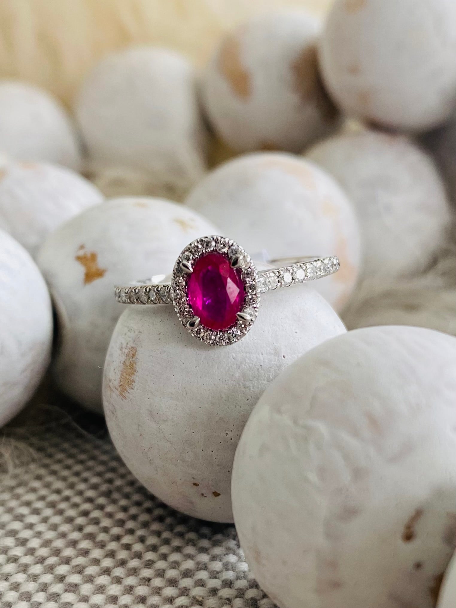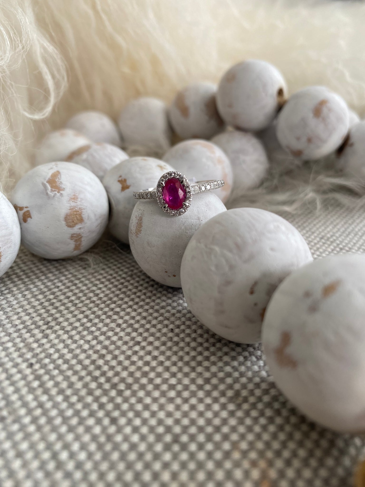 Stunning ruby and diamond ring set in 10k white gold