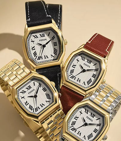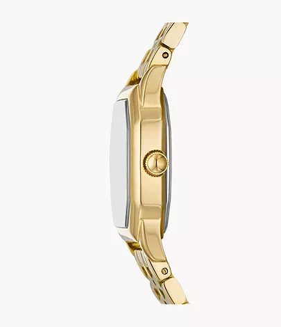 Inspired by a classic archival style, Harlow brings the sophistication of the past to modern day. This intricate polished gold-tone stainless steel five-link bracelet watch features an octagonal-shaped case, textured cream dial and three-hand movement.