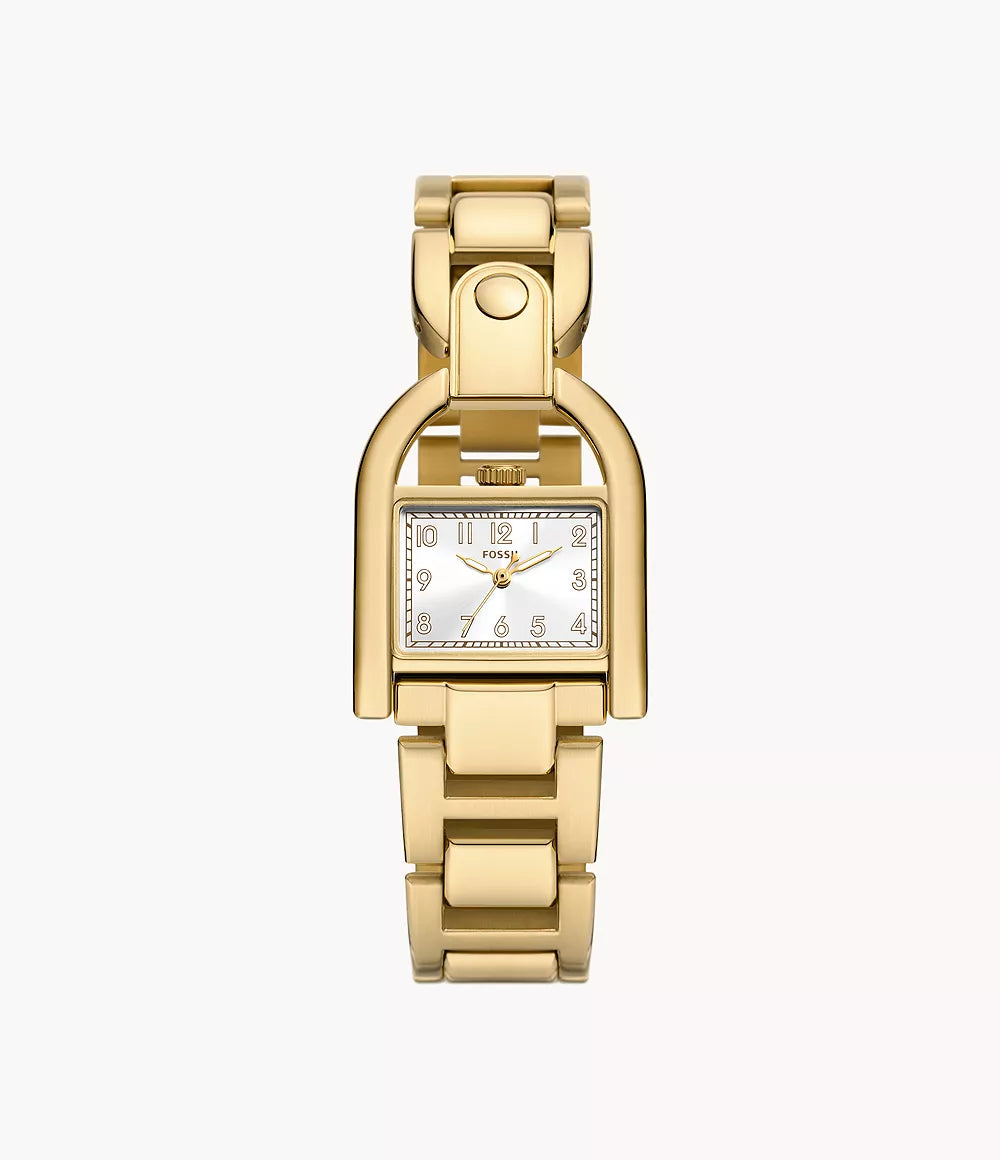 Intentional. Timeless. Ready for wherever you take the day. With a case framed by our Fossil Heritage D-Link, this Harwell statement timepiece features a silver sunray dial and a gold-tone stainless steel bracelet that's as classic as it is polished.