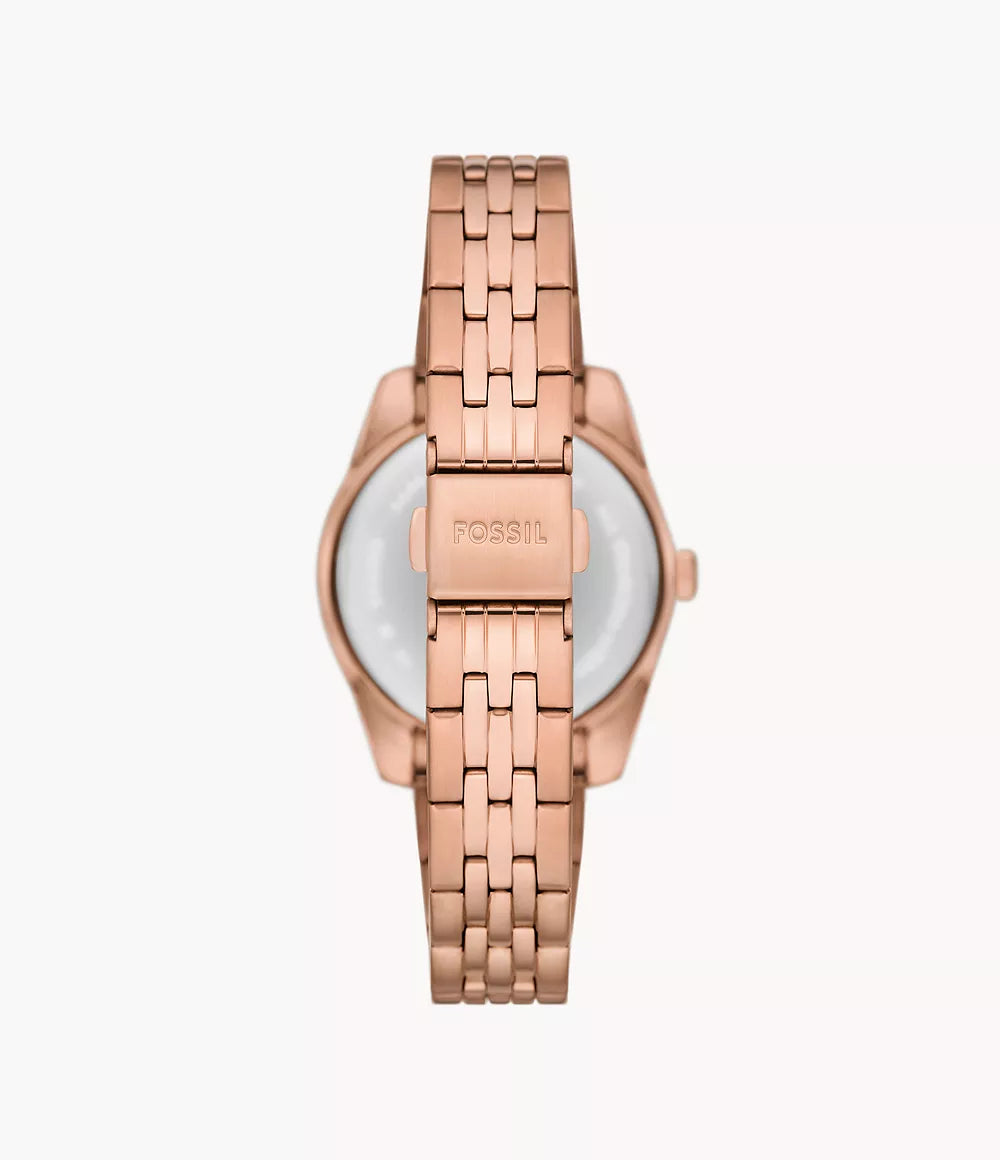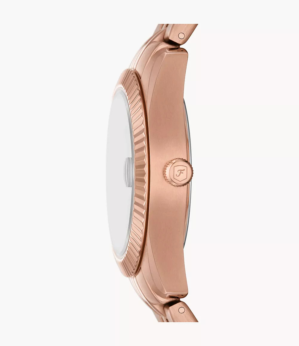 This 32mm Scarlette features a green sunray dial, three-hand date movement and rose gold-tone stainless steel bracelet.