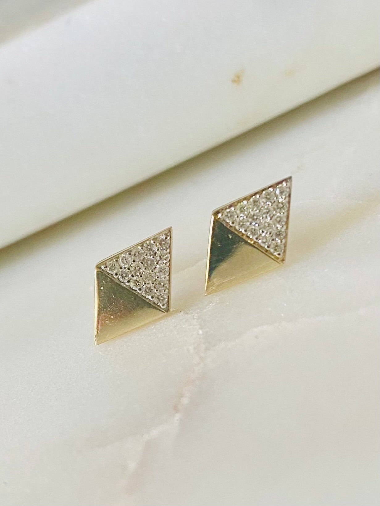 Diamond shaped studs in 10k yellow gold with a shimmering 0.15 carat total weight of genuine natural mined diamonds.