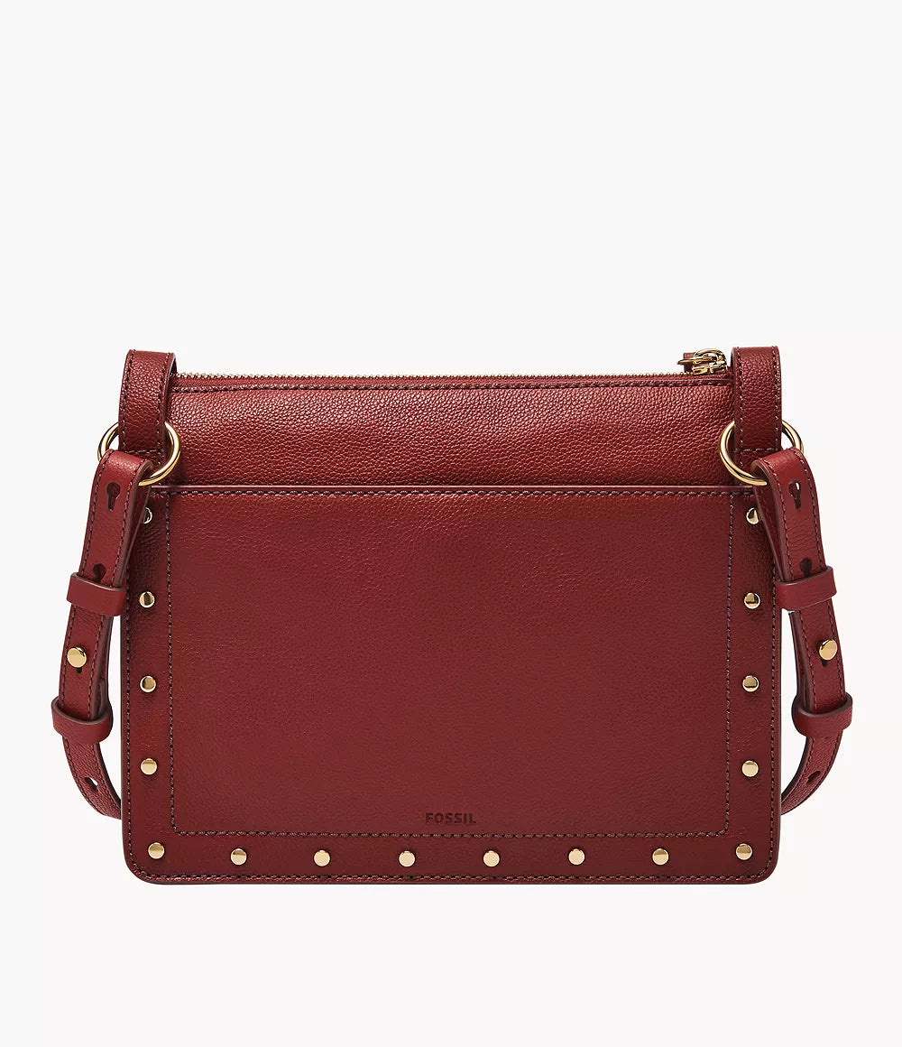 This leather crossbody features 1 zip pocket, 1 back slide pocket, 1 front slide pocket and 1 adjustable crossbody strap.
